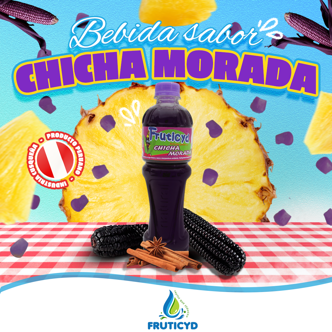 El sabor de la tradición peruana en su mejor versión. FRUTICYD Chicha Morada 470 ml es una bebida deliciosa, refrescante y equilibrada, ideal para compartir con familia o amigos. Sin octógonos y con un toque que te conecta con nuestras raíces.